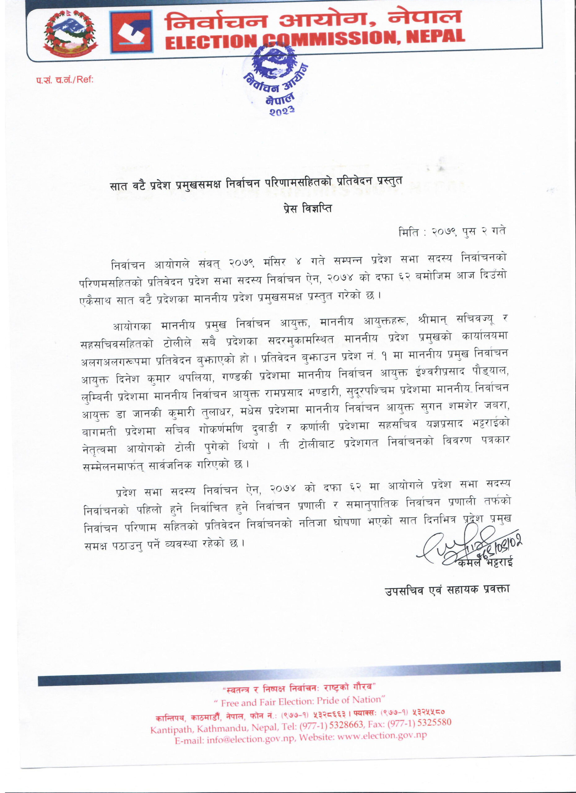 ती टोलीबाट प्रदेशगत निर्वाचनको विवरण पत्रकार सम्मेलनमार्फत सार्वजनिक गरिएको आयोगका सहायक प्रवक्ता कमल भट्टराईले जानकारी दिए ।